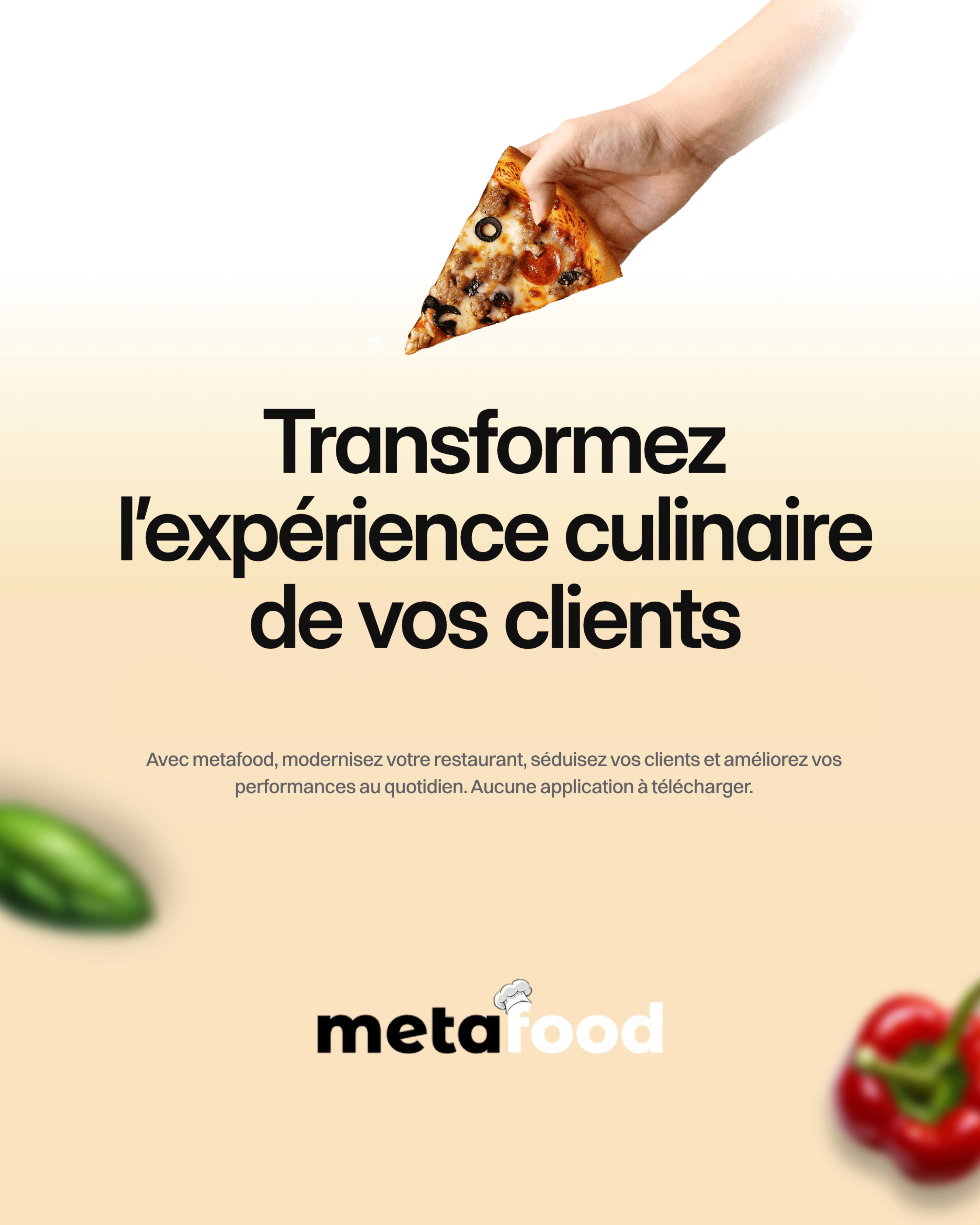 Avec metafood, modernisez votre restaurant, séduisez vos clients et améliorez vos performances au quotidien. Aucune application à télécharger.